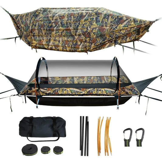 Flat Lay Hammock Tent with Mosquito Net Waterproof Rainfly Storage Room