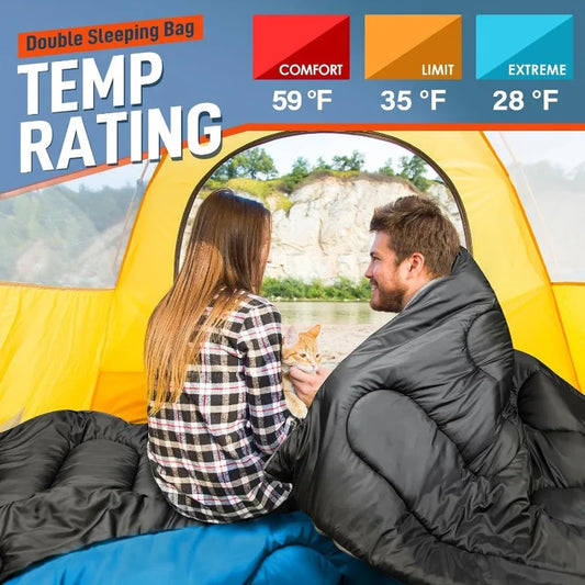 Double Sleeping Bag with Pillow, XL Queen Size / All Season