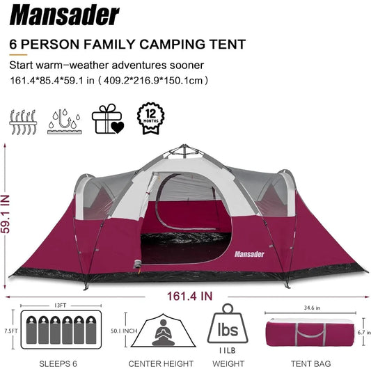 6 Person Family Camping Tent,Waterproof ,Windproof